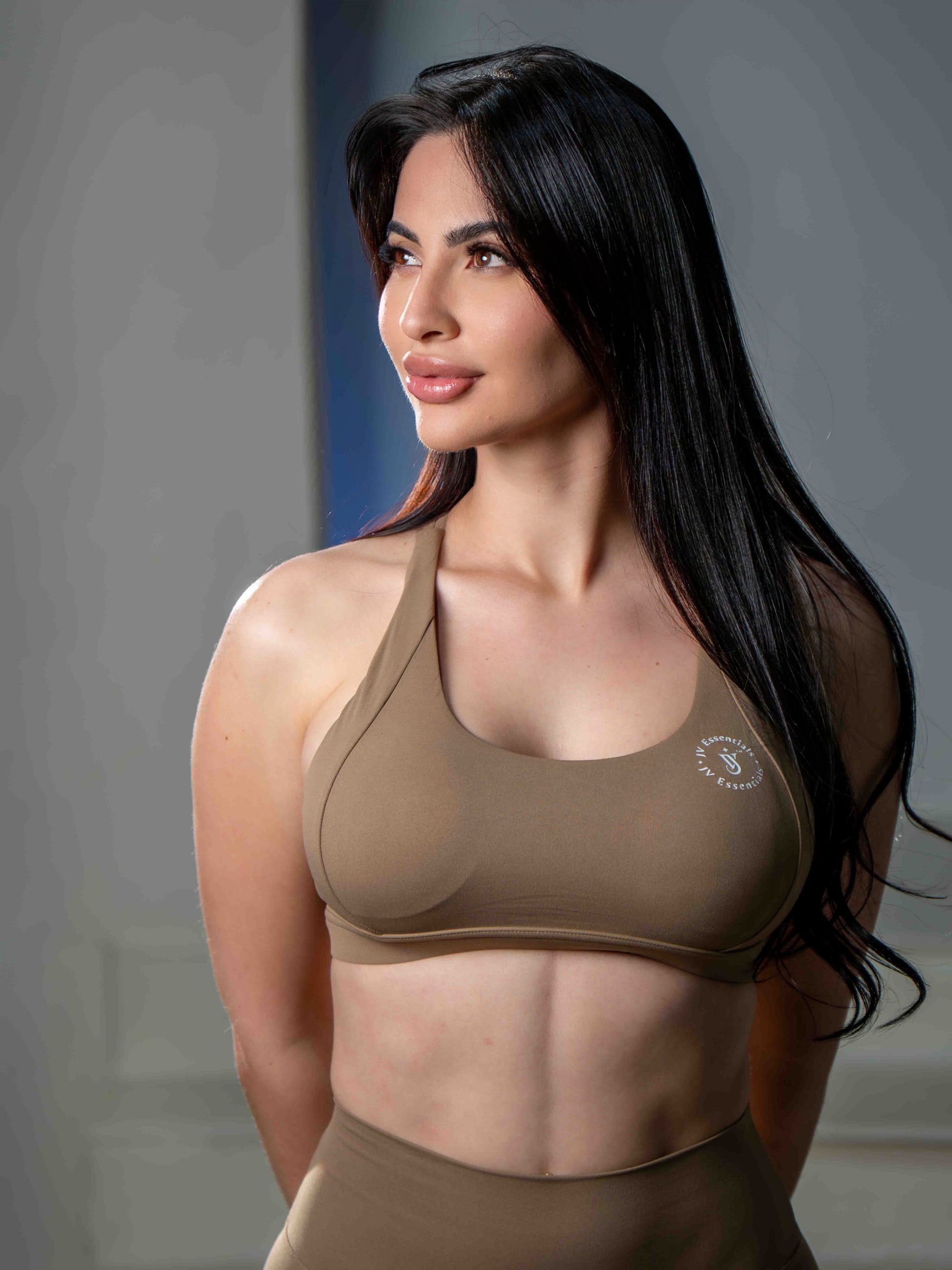 Un set diseñado para realzar tu figura con elegancia y comodidad. El top de escote halter brinda soporte y define el busto, mientras la legging de cintura alta estiliza el abdomen y alarga visualmente las piernas. Su tela suave y elástica se adapta al cuerpo como una segunda piel, ideal para entrenar o para un look athleisure sofisticado.